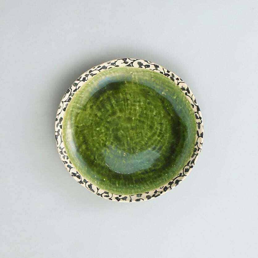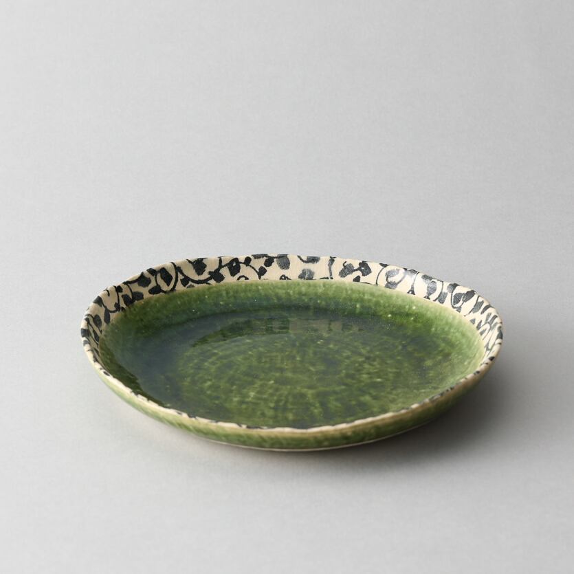 酸化焼成の瀬戸焼織部の中でも抜けるような独特の緑が特徴の織部 ひと際目立つテーブルの主役の器です
