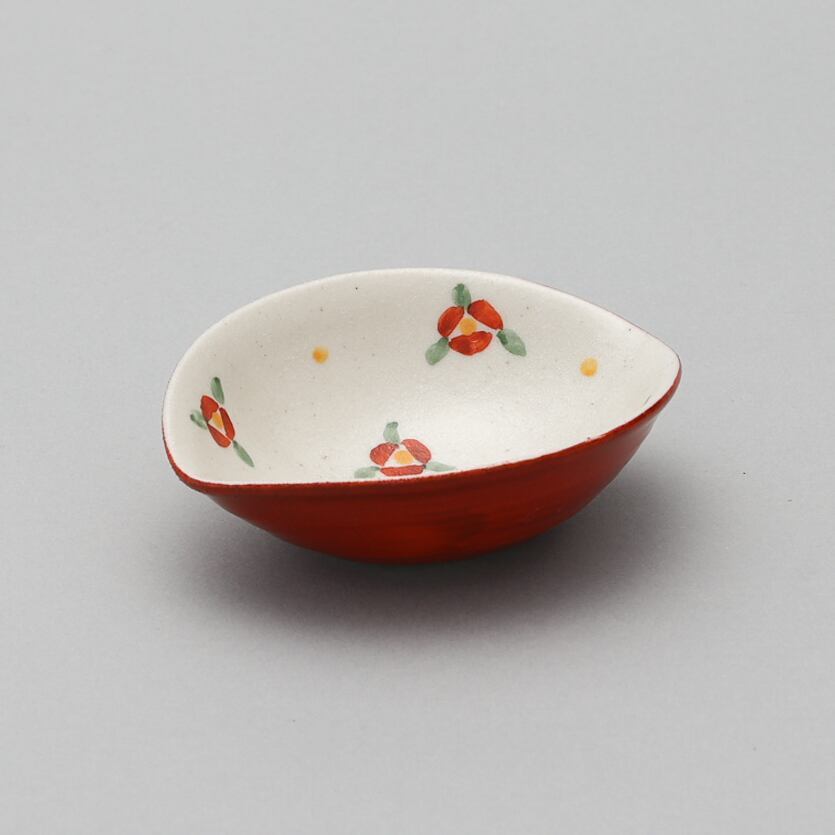 かわいらしい形に赤絵で彩をほどこしました。かさなりも良く、収納に便利です。