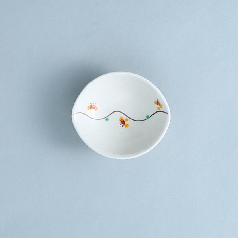 かわいらしい形に赤絵で彩をほどこしました。かさなりも良く、収納に便利です。
