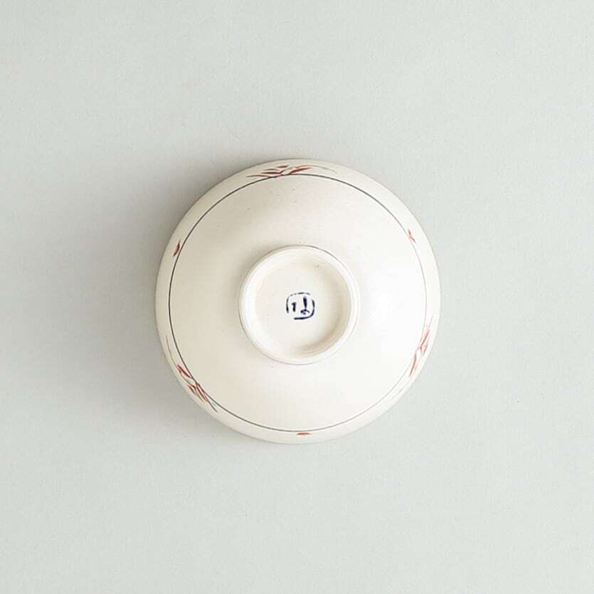 毎日使う物なので、飽きのこない、あたたかみのある落ち着いた赤絵をほどこしました。