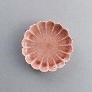 可愛く咲いた花をイメージした輪花型のお皿は温かみのある桜色でシーンを選ばずお使い頂ける出番の多いお皿です。